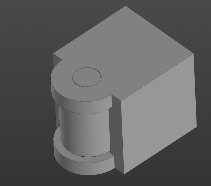 Дальше, нам надо добавить сюда отверстие для винта, который будет зажим стягивать. Просто отверстие делать не интересно, потому что при изгибе стенки перестанут быть параллельными, и получится некрасиво. Пэтому дальше я делаю отдельной деталью вот такой цилиндик.