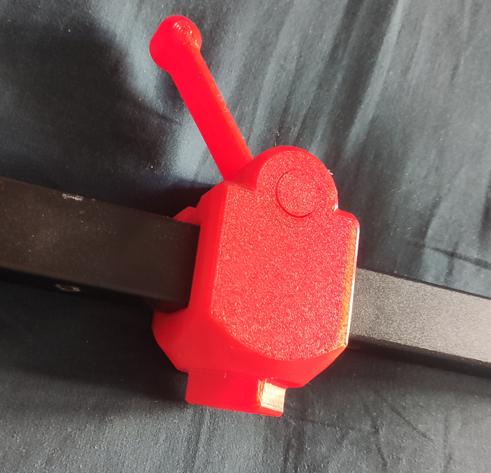 Мне понадобилось закрепить на профильной трубе пластиковую деталь, с возможностью перемещать её вдоль трубы и фиксировать в произвольном месте. Использовать металлический винт с барашком - не хотелось, чтобы не царапать трубу. Ну и вообще, просто захотелось.
