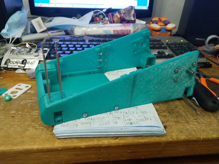 Держалка дрыгателя шпинделя - разбилась, в районе винта зажима - напечатанная на 3Д принтере деталь не выдержала напора, и разошлась по слоям.