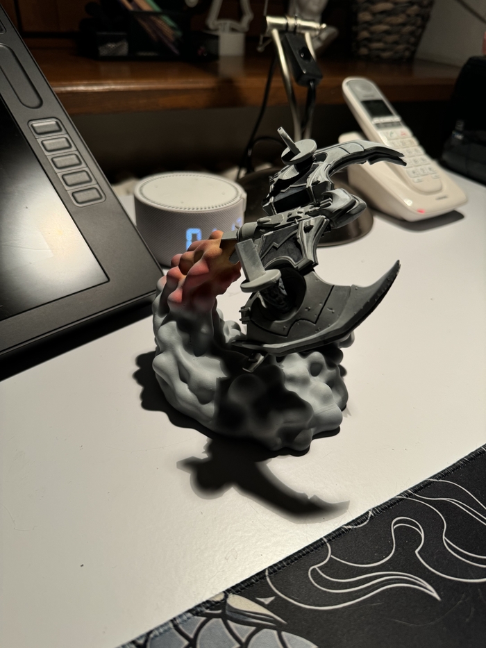 Решил стартануть с подставки, тут покрас в основном аэром под почти горизонтальным углом. Что бы максимально выделить рельеф, считаю получилось бодро