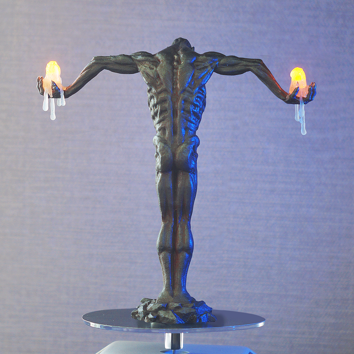 Можно было бы еще рассказать про сделанный пиломеч не попавший в видео (он нам не понравился своим внешним видом), про то как я сделал печатный пресс с табличками для изготовления литаний, про допечатку аксессуаров (типа черепа в гало), про то, как я загубил несколько деталей при обработке дихлорметаном (и их пришлось перепечатывать), как потом пришлось выдумывать крепления на тело для всего этого добра, но и так уже много понаписал, понадушнил, показал, что ничего не понимаю ни в обработке деталей, ни в покраске, так что буду закругляться.