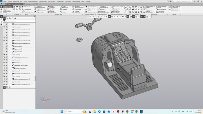 Но эта модель оказалась совсем непригодна для 3д печати, слишком тонкий руль и тонкие части у лыжи. Тогда и пришла в голову идея самому смоделировать такой снегоход в Компасе, чтобы был оптимизирован под 3д печать и достаточно прочный в качестве игрушки для ребенка.