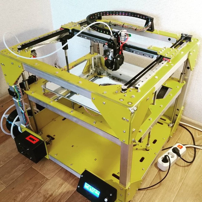 Сегодня желтый здоровяк - моя рабочая лошадка с областью печати 335х320х345. Лошадка эта пашет практически без остановки и радует меня и моих заказчиков, а это самое главное!