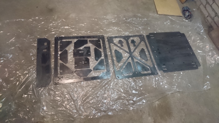 После лазерной резки стальные детали сильно покоробило. Благо каркас из алюминиевых труб оказался довольно жестким, и я смог притянуть листовые детали к раме.
