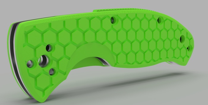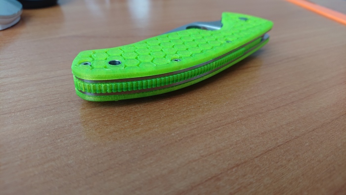 И естественно я захотел изменить внешний вид ножа по средствам домашнего 3D принтера. Хотелось яркий нож с интересной фактурой накладок. К тому же, очень хотелось сделать лаконичный спейсер, для защиты клинка и прочего от монет, ключей и прочей мишуры.
