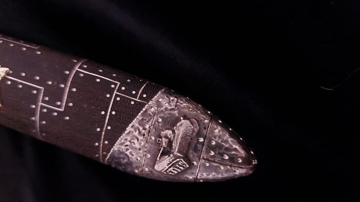 Процесс по изготовлению выглядел примерно так: моделирование прототипа, печать прототипа на 3д принтере, изготовление силиконовой формы, заливка силикона, обжег для придания прочности, обработка для устранения неровностей, обтягивание кожей, "рисование" стрелочек. Изготовитель: Михаил Прахов.