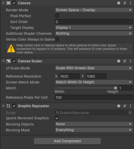 Настройки Canvas`oв, Sort Order на ImagesCanvas - 0, на ScoreCanvas - 1