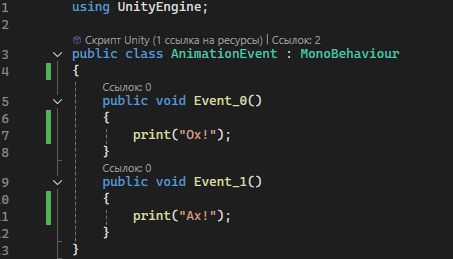 Находим в Asset AnimationEvent Script и вписываем туда:
