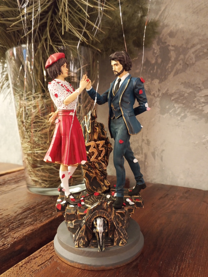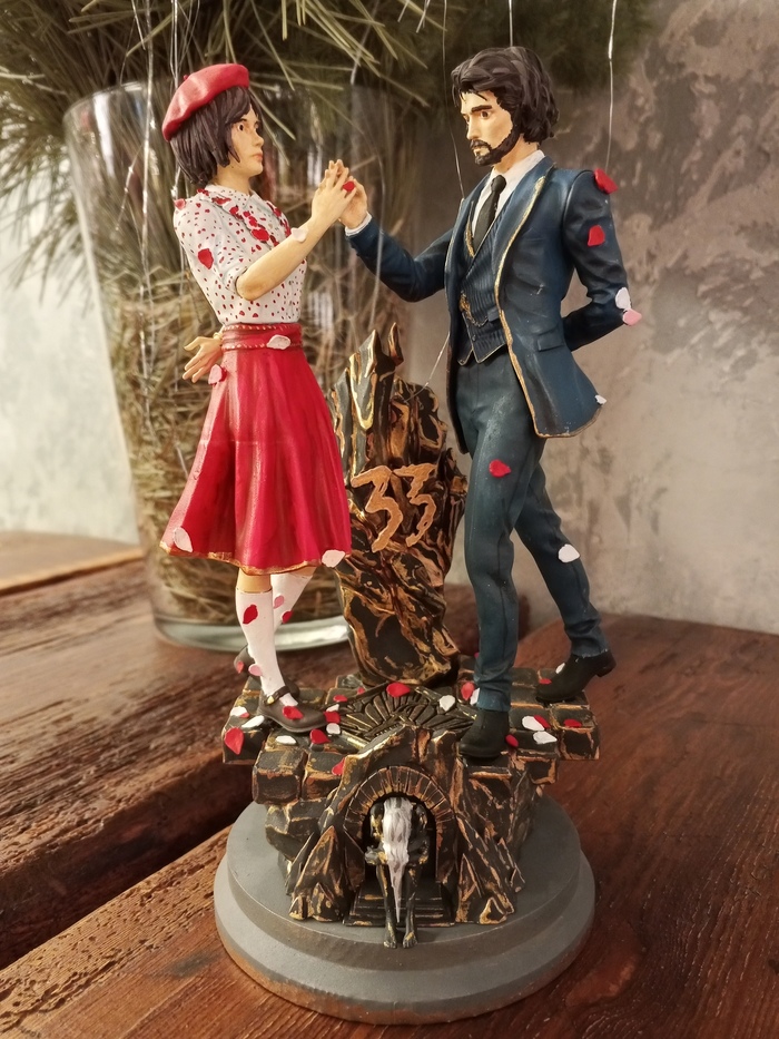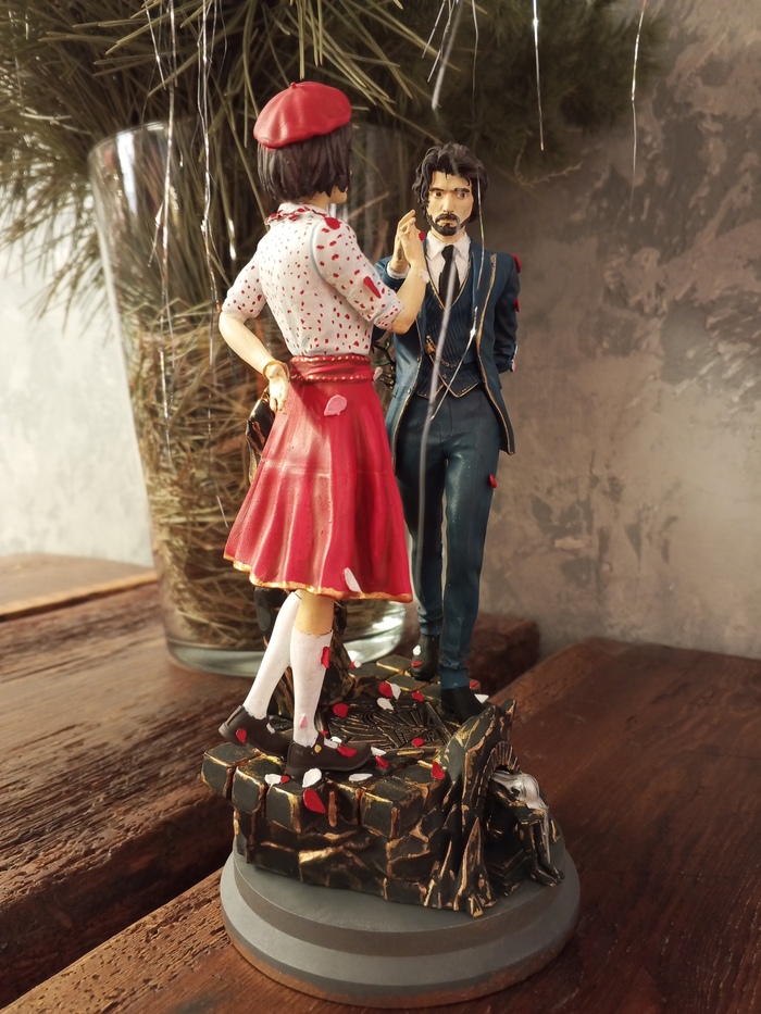 На новогод муж задарил мне Гюстава и Софи, и ещё одну фигурку, которую я сейчас собираю. Сказал: "ты ж художник, покрасишь, я в тебя верю"