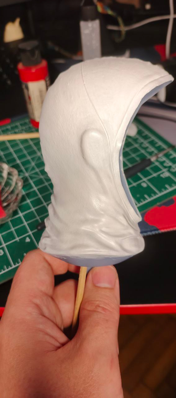 здесь можно видеть, как неразведенный акрил ложится на поверхность при использовании кистями, мне это не нравилось, так как привык к результату после аэрографа, ровный и аккуратный слой краски, Смывал все около 3-4х раз и пытался слоями набирать уже растворенным акрилом, чтобы убрать эти мазки кистями.