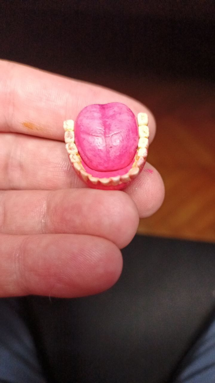 здесь я уже проработал немного текстуру на языке и разбросал рандомно зубы и сделал их более поврежденными, чтобы они не выглядели как виниры.