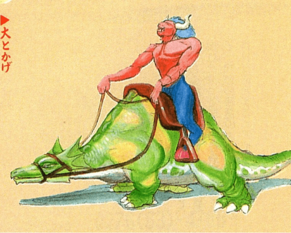 Great Lizard (Большой Ящер) - Демон, не покидавший своего поста с самого рождения, и Большой Ящер, лишенный атакующей силы, случайно стали друзьями. Позволив Большому Ящеру нести демона на спине, оба исполнили свои желания. Демон, в частности, был так рад увидеть мир за пределами своего поста, что теперь бросает дополнительные бомбы.