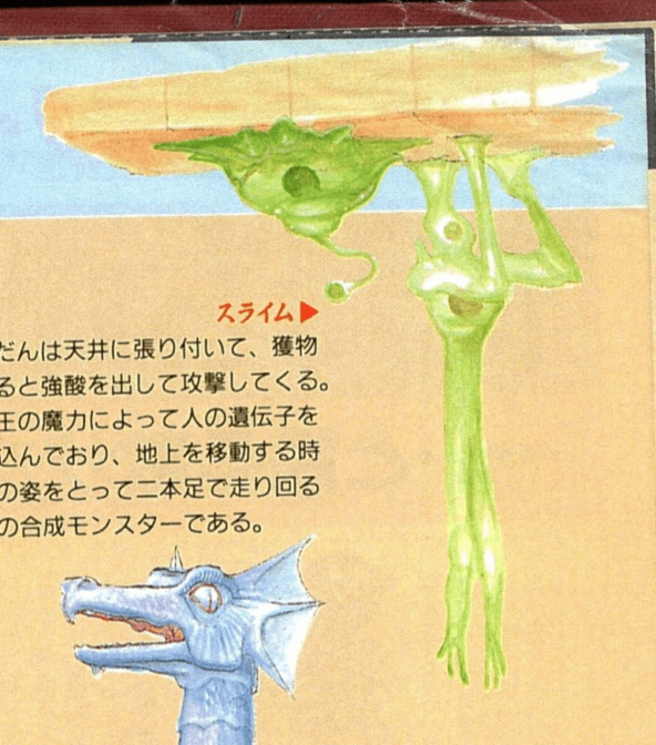 Slime (Слизь) - Обычно она прилипает к потолку и атакует проходящую мимо добычу, выпуская сильную кислоту. Наполненная человеческими генами с помощью магии Короля Демонов, она принимает человеческую форму и бегает на двух ногах при перемещении по земле, являясь своего рода синтетическим монстром.