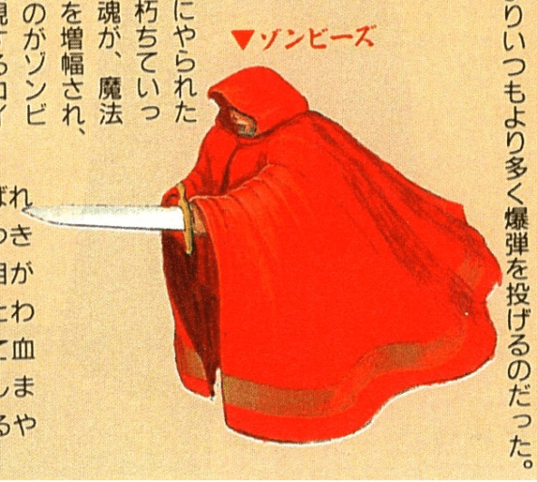 Zombies (Зомби) - Неупокоенные души игроков, которые когда-то вошли в эту башню, пали жертвами монстров и сгнили, так и не будучи погребенными. Они были воскрешены внутри башни как зомби, их обида была усилена магическим плащом. Монеты, которые всегда появляются при их поражении - возможно, это сбережения, накопленные ими при жизни?