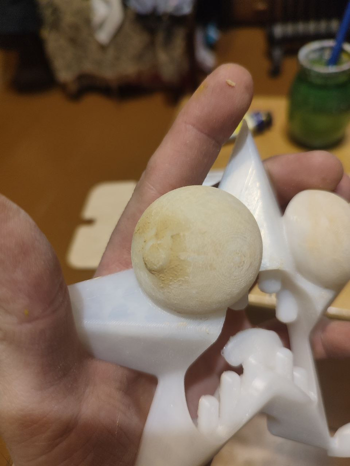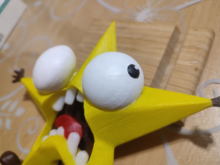 Глаза прошел шпатлевкой для дерева, для уменьшения ребристости после печати, потом шлифанул шкуркой. По уму нужно несколько слоёв, но некогда ждать высыхания шпаклевки.