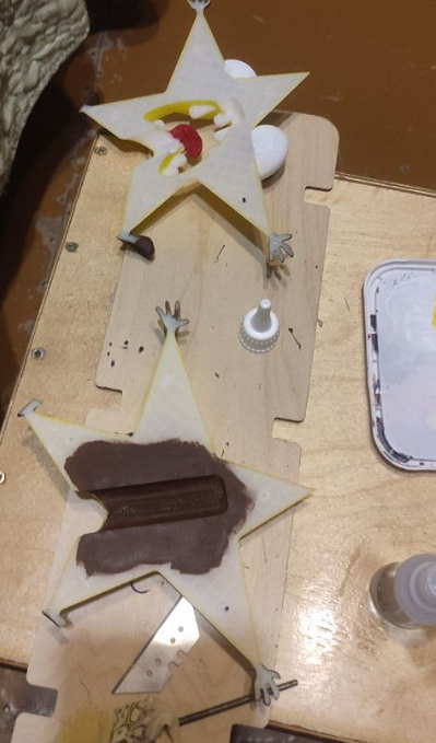 Ручки - ножки коричневым. Язык красным. Зубы, думал, белым покрасить, но решили что пластик слегка прозрачный лучше подходит для зубов.