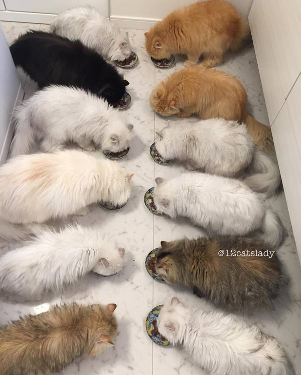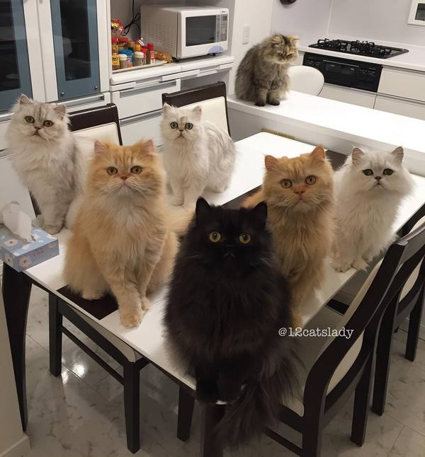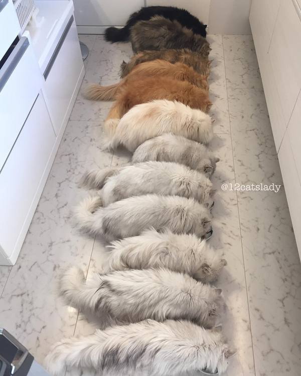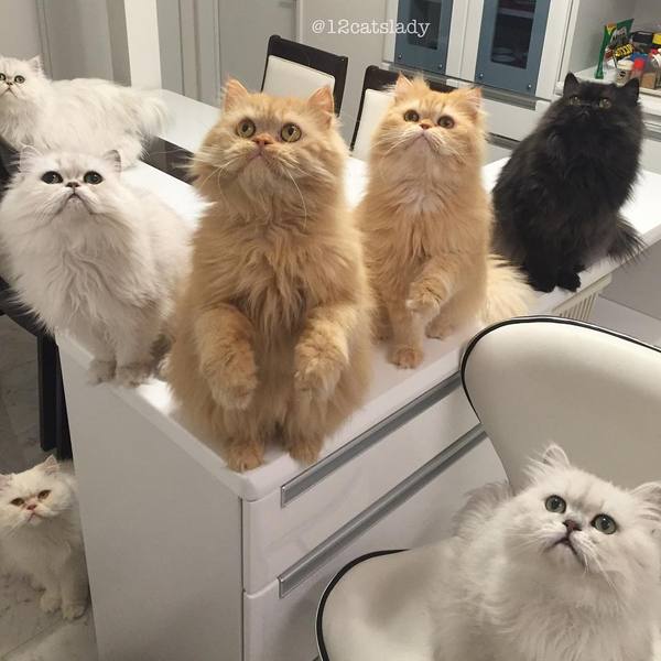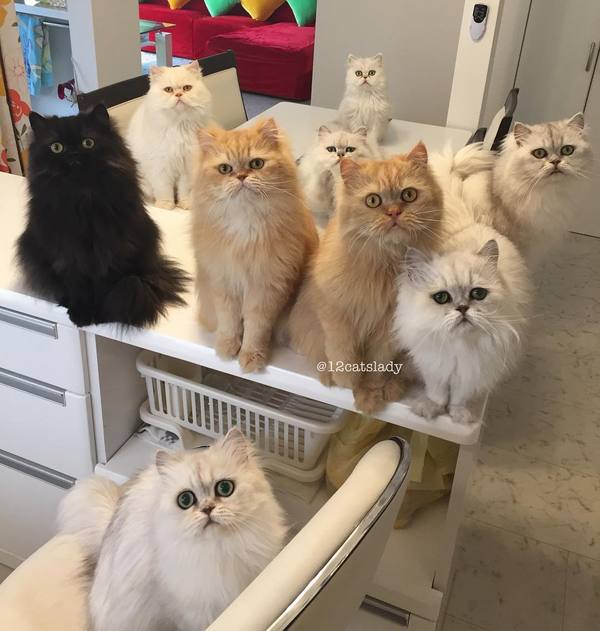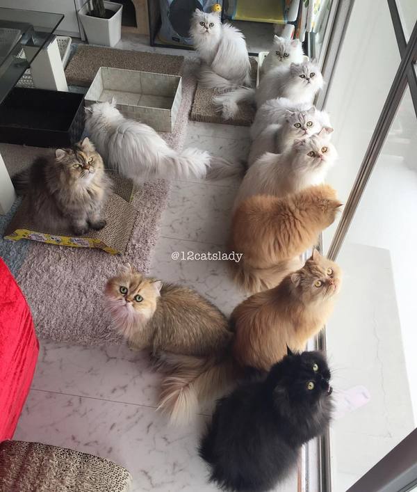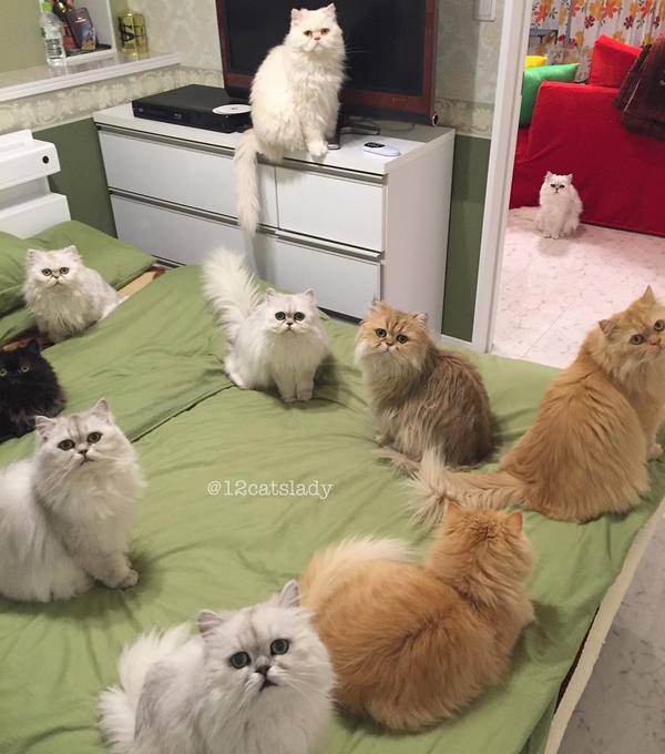 В Японии живет девушка у которой 12 котов породы Персидская Шиншилла. Их зовут : Yuki, Shou, Momo, Yuri, Blackie, Bruce, Kaya, Karu, Ai, Tiger, James and Goodie 🐱. Хозяйка говорит, что это всегда было ее мечтой, быть в окружении бесконечных пушистых пушистых purry кошечек. P.S. Девушка оказалось замужней!