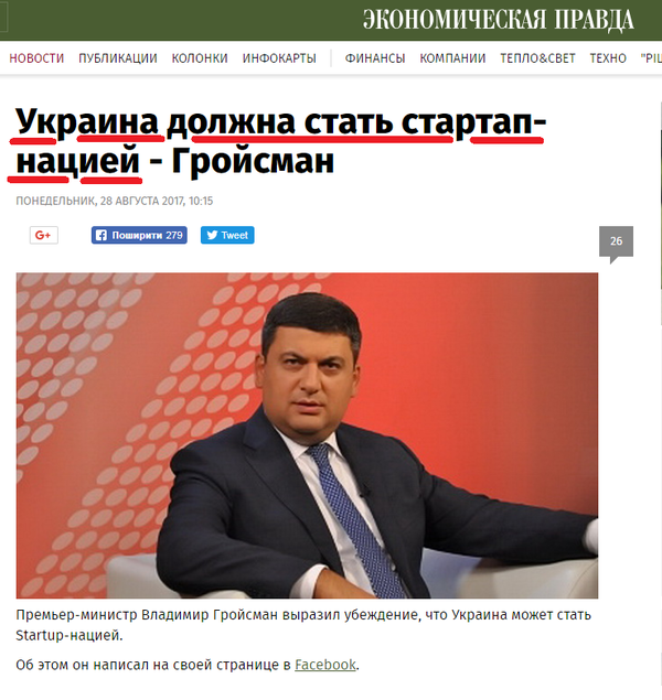 "Стать следующей Startup-нацией - хорошая цель для нас и я полностью убежден в ее досягаемости. У Украины есть все предпосылки для того, чтобы этого достичь. Правительство уже начало работать над поддержкой новых проектов, которые имеют шансы на глобальный успех", - отметил премьер-министр.