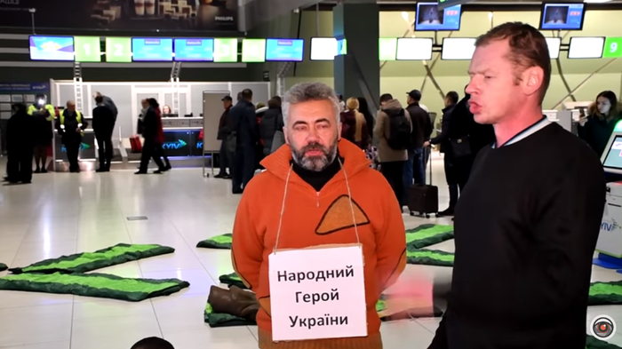В Киеве в аэропорту "Жуляны" активисты в военной форме устроили мирную акцию протеста против депортации из Украины в Грузию троих грузинских журналистов и вытирана АТЫ Вано Надирадзе.
