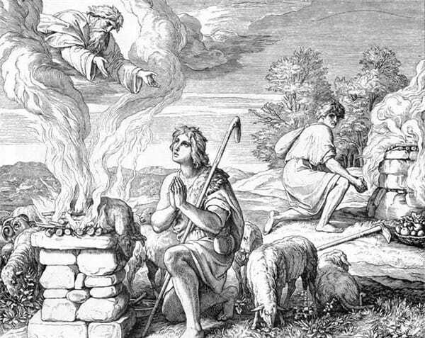 Будучи земледельцем, Каин принёс в дар плоды земли, тогда как пастух Авель решил привести несколько овец. Бог выбрал дары Авеля, что очень разозлило Каина. В итоге обиженный Каин убил своего брата.