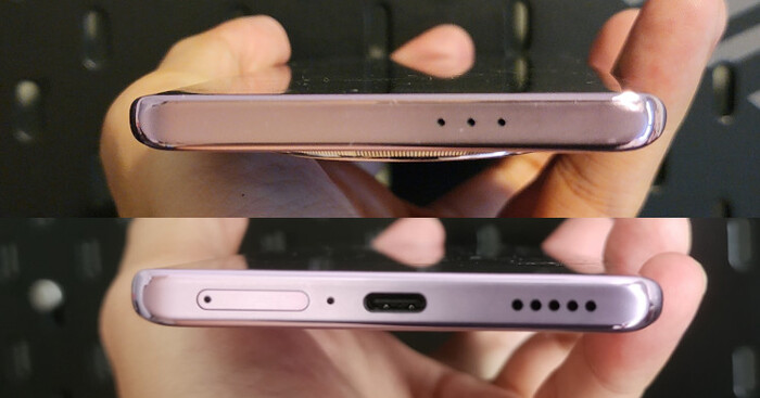Снизу расположился порт Type-C с поддержкой OTG, решетка динамика, микрофон слот для двух SIM-карт. Расширение памяти не предусмотрено, а eSIM не поддерживаются.