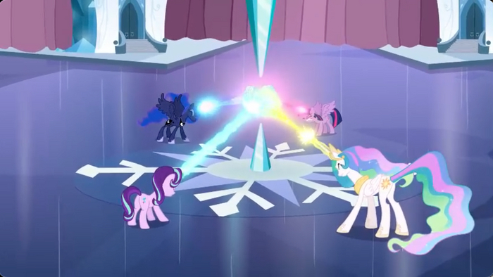 Старлайт находит нужную локацию с главными героинями в неких «стазис-капсулах» (там уже находятся и Дискорд с Трикси).