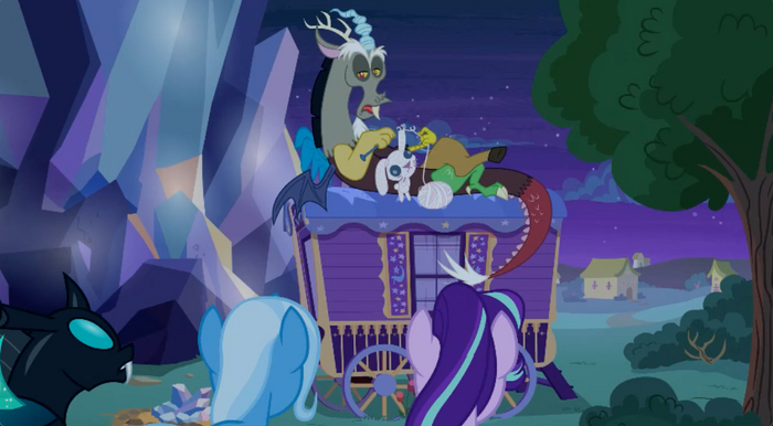 "Меня поражает, что в моменты подобных ЧП персонажи не вызывают того же Дискорда для помощи" - начал уже было по старинке думать я, как внезапно появляется Дискорд и, вторя моим мыслям, говорит что про него всегда забывают.
