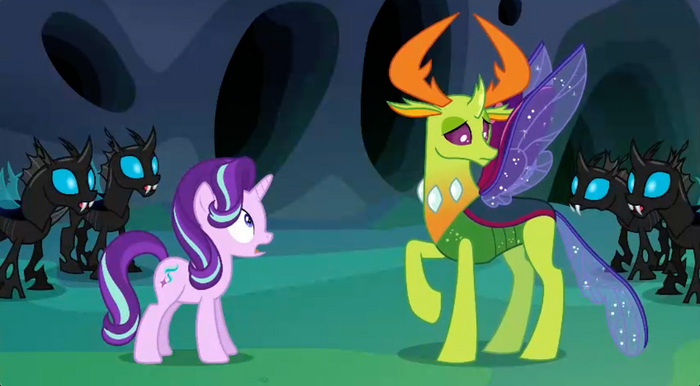 Идея отправиться за помощью к Каденс в Кристальную Империю разрушается появлениям одного оборотня-союзника Торакса (который в предыдущих сериях сдружился со Спайком, как отказавшийся от пути оборотней).