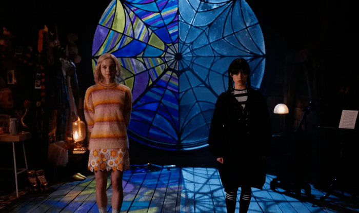Заметил схожесть сцен с комнатой в сериале Уэнсдей, и даже наличия виолончели в качестве музыкального инструмента в этом моменте.