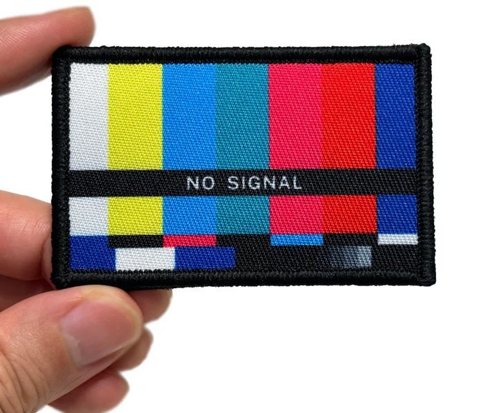 Прикольная нашивка на липучке в виде экрана телевизора с надписью No signal (Нет сигнала). Размеры 5*8 см. Ссылка на неё