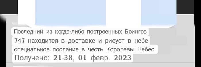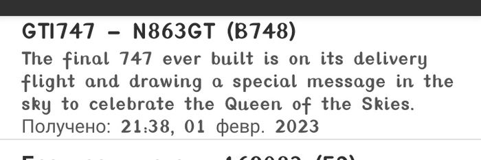Пролетая над штатом Вашингтон последний построенный боенг747 нарисовал в небе послание Королеве Неба!