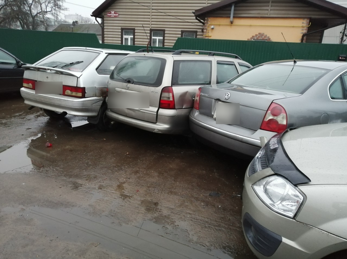 То что на водиле не было лица - неудивительно, он собрал всю паркову - 5 машины включая такси повреждены в ДТП, естественно тут будет страх в лице. Ларгус в который въехали - там всю заднюю часть на замену вообще. Водителя если честно - мне жалко. На внешний взгляд - мужчина пенсионного возраста, который явно не хотел чтобы так его день закончился....