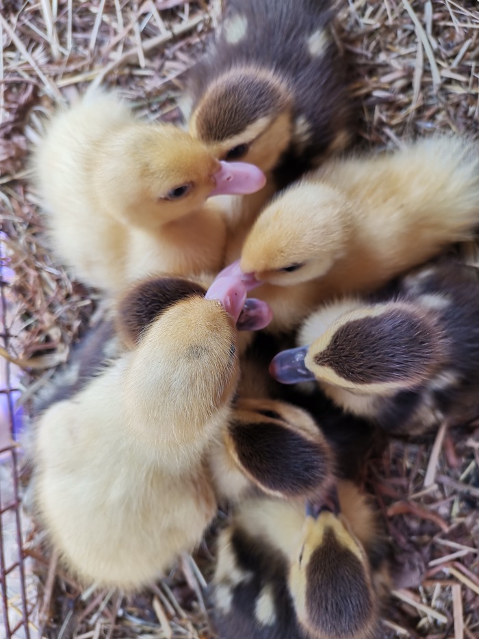 Уточки родились. В муках родились -- трижды пытались откинуться, и трижды мы с тетей отогревали их феном