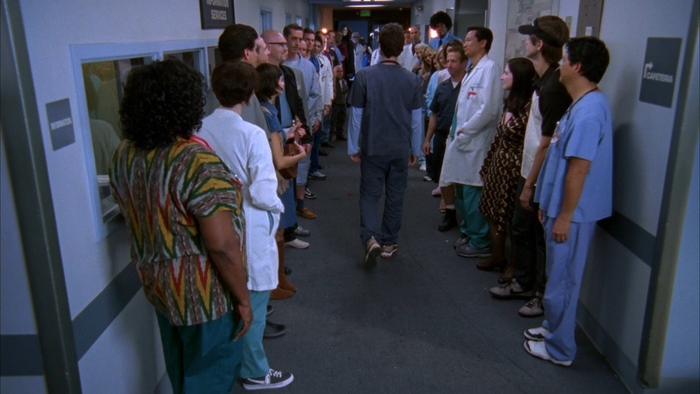 Эпизод «Мой финал» – один из лучших в истории телевиденья. Билл Лоуренс зарифмовал последний день Джей Ди в Sacred Heart с моментом, когда герой впервые попал в клинику в качестве интерна. И подвел итог всех восьми сезонов проходом по коридору, наполненному живыми и мертвыми персонажами-воспоминаниями.