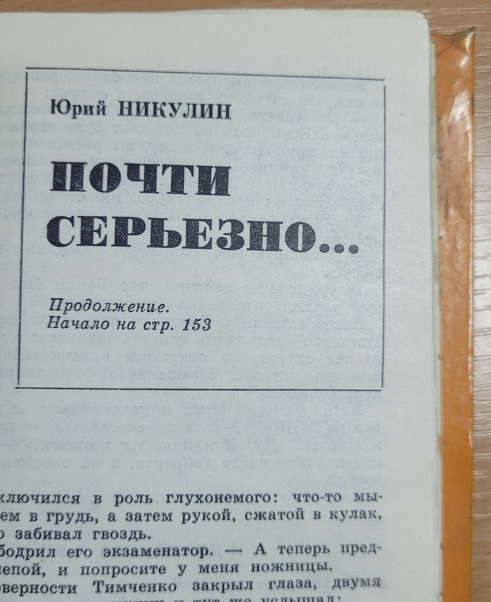 Но моя любимая, из всех сделанных своими руками, книга Юрия Владимировича Никулина "Почти серьезно...". До сих пор перечитываю. И когда читаю, у меня впечатление, что Юрий Владимирович сам рассказывает мне обо всем, что написано.