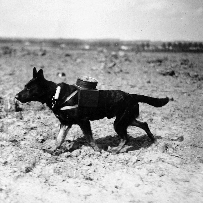 Овчарки были саперами, связистами, санитарами, диверсантами. Функционал у породы громаден, а вклад в Победу огромен. Хоть и не всегда громок. На фотографии собаки эвакуируют раненного бойца с поля боя. Фотография Георгия Хомзора.