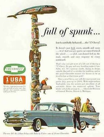 До сих пор эра 1950-х рассматривается в истории американской автомобильной промышленности как феномен с ее небывалым расцветом технических новинок и причудливым дизайном, выходившим далеко за пределы человеческой фантазии. Историки придерживаются различных версий в поисках истинных причин, вызвавших этот расцвет: экономический подъем, освобождение от общепринятых эстетических канонов, расцвет новой молодежной культуры «секса, наркотиков и рок-н-ролла»… Существует даже мнение, что на дизайнерских изысках автомобилей того времени отразилась небывалая активность внеземных цивилизаций и частые «налеты» на американские города «летающих тарелок»… Можно придерживаться любой из этих версий, но если смешать все ингредиенты воедино — Элвиса Пресли, рок-н-ролл, кожаные куртки, наркотики, «свободную любовь», «кока-колу» и «летающие тарелки», — то в итоге мы получим лишь один автомобиль, главную «икону» той эпохи — Chevrolet Bel Air…