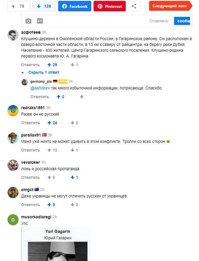 Продолжаю наблюдать за работой Украинской пропаганды на портале 9GAG. Настроение по прежнему анти-Российское, любая реальная, а порой и не реальная (не укладывающаяся в голове) новость в пользу Украины, воспринимается положительно. Без стеснения выражается ненавистью ко всему Российскому, и в целом к Россиянам. Благодаря пропаганде мы стали зверьми, убийцами, насильниками, мародерами (лутерами) и конечно же врунами с промытыми мозгами пропагандой Кремля.