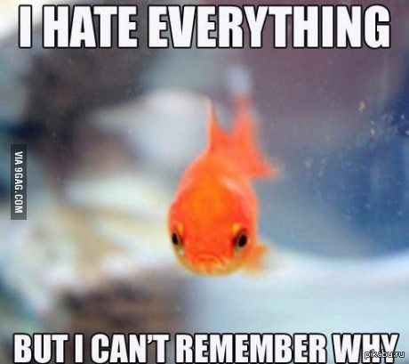 12 ErichMath Злая аквариумная рыба 12 лет назад Перевод : Я ненавижу всё, но я не могу вспомнить почему Рыба 9GAG Зло Аквариум Память