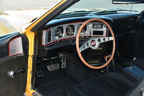 Под этим “кое-что” я имею в виду моторы. Нельзя сказать, что линейка моторов была уникальна, честно говоря, она в целом повторяла Javelin, но исключая пенсионерские моторы. “Только V8, только безумие” - такие мысли, судя по всему, посещали команду инженеров когда они решили ставить 6,4 литровый 315 сильный мотор, с чудовищным крутящим моментом в автомобиль, размером с Ладу Весту. Правда пришла эта идея только в 1969 году, да и то в качестве опции “GoPackage”, до этого момента вершиной моторной гаммы для “GoPackage” был 360-ый (5,9 л), а для обычных версий предлагался 343-й (5,6л.), причём разница в мощности между ними была несущественна - всего 5 лошадиных сил. Базовым же был мотор на 4,8 литра мощностью порядка 225 сил.