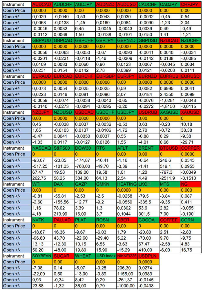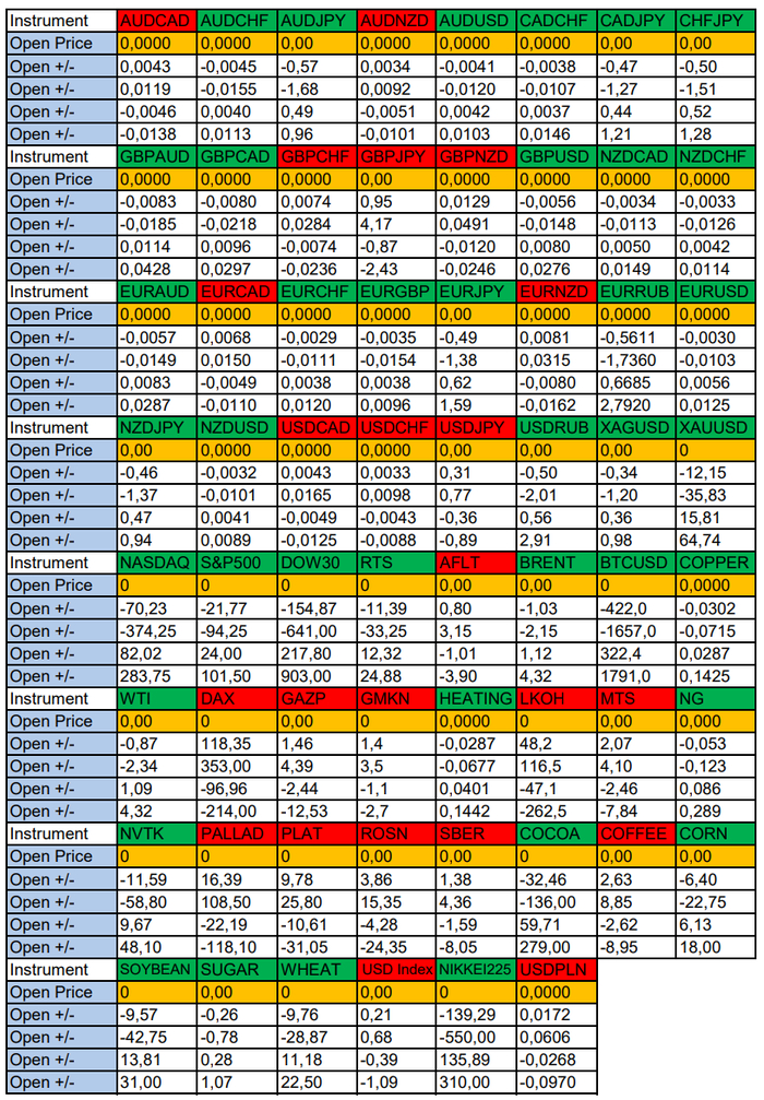 Весь перечень анализируемых активов указан ниже в общем количестве 62 инструмента. Здесь Вы найдете активы рынка Форекс, популярные активы Московской биржи, не менее популярные активы Чикагской биржи СМЕ и мажор криптовалютного сегмента - Биткоин, за которым следуют все альткоины.