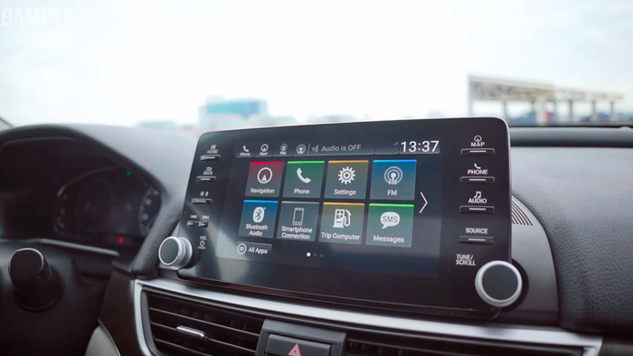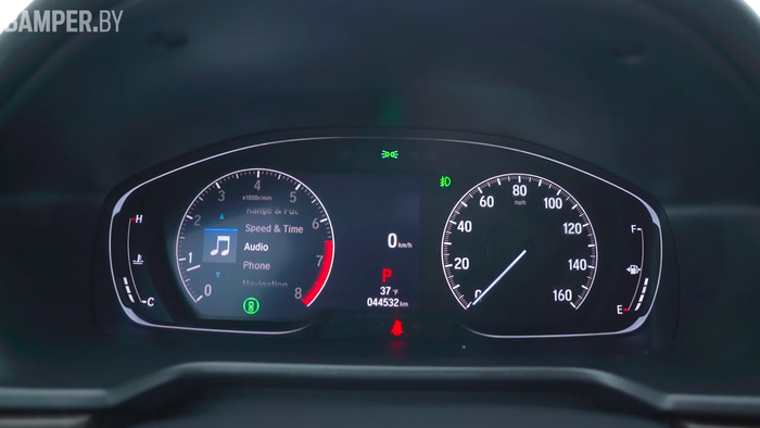 Новый Accord получил кнопки для регуляции громкости и настройки частоты. Настройки климат контроля тоже легко увидеть и изменить благодаря дополнительным кнопкам снизу. Седану удается одновременно выглядеть футуристично и привычно. Объем багажного отделения составляет 473 литра. Конечно, он не позволит перевозить крупногабаритные грузы, да это и не зачем.