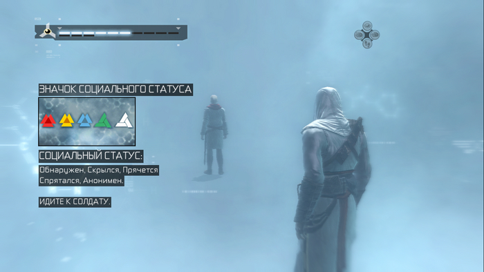 4. Ну ладно, вернёмся к Ассасинам. Как уже поняли, вы в Анимусе и должны переживать воспоминания предка. Но для начала, ха, пройдите обучение. Знаете, это выглядит сейчас смешно, а тогда я проваливал обучение несколько раз. Особенно на этом моменте