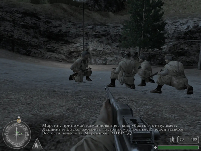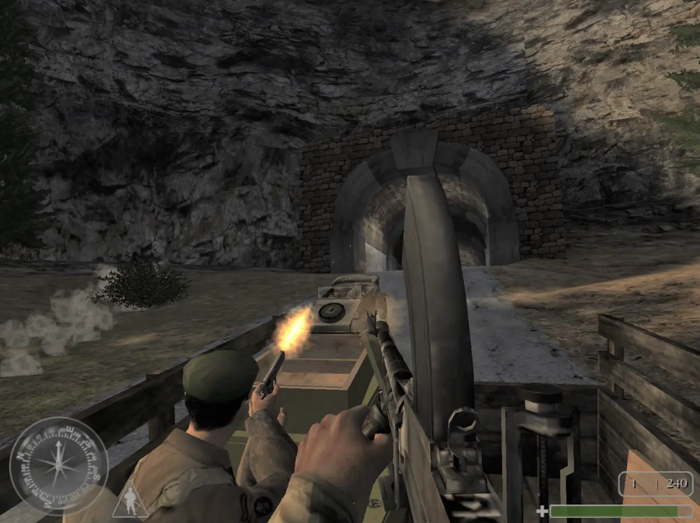 Впрочем, основные игровые элементы перекочевали из оригинала практически без изменений. Такие же стрельба и передвижение, хэлсбар и аптечки, квиксейвы-квиклоуды, «турельные» секции с МГ-42 или поездками на машинах/грузовиках, миссия на танке и прочее, прочее, прочее. Соответственно, геймплейная петля также осталась в целостности и сохранности – передвигайся от укрытия к укрытию и от аптечки к аптечке, высовывайся из-за укрытия, чтобы сделать пару выстрелов, пока противники не кончатся или пока не будет выполнена задача. Смыть, повторить. Что удивительно, в отличие от следующих частей серии, в этой петле чуть больше разнообразия, но об этом мы поговорим позже.
