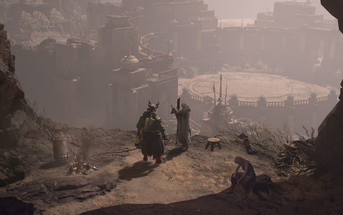 Хотя и непонятны претензии к открытому миру с точки зрения дизайна. Такой проработки локаций, кажется, не было ни в одной из частей. Blizzard решили уйти в мрачный средневековый реализм, когда вокруг грязь и дождь, пустота в сердце и тлён на лице героев. Холмы, горы, пустыни, леса, а также болота наполнены деталям окружения — они рассказывают игроку о падении Санктуария в пучину ненависти, о смерти местных героев, о забвении орденов и кланов. Это то, что я хочу видеть в играх с открытым миром, а не размеры ради размеров — тут команда Diablo IV попала в сердечко.