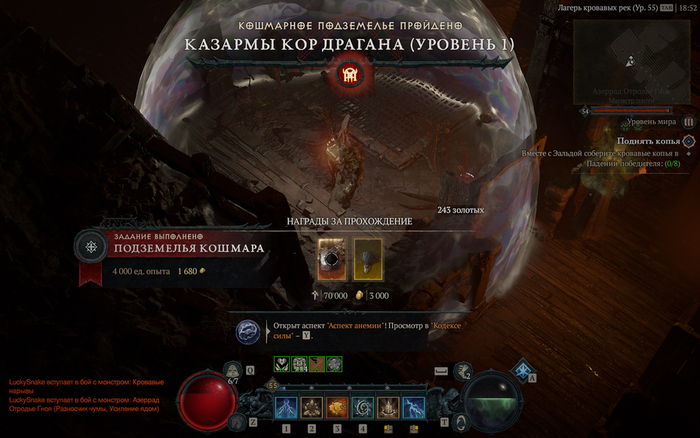А добывать тут есть что. Основой героя в серии были легендарные предметы, наборы доспехов или уникальные виды брони — в Diablo IV формула не изменилась. Однако теперь за прохождение подземелий или разбор предметов игроку выдаются аспекты — применить их можно на любую основу, таким образом добавляя к отличному доспеху или вооружению легендарные свойства. Это открывает возможности для билдостроения.