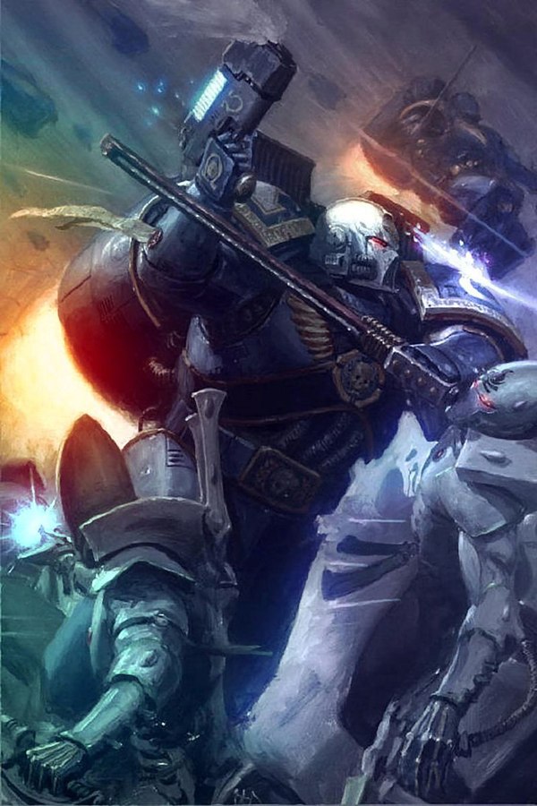 Задачи возложенные на Ордо Маллеус настолько важны, что на их экипировку не жалели никаких средств. Все новейшие достижения в области науки и техники находили свое отражение в их терминаторской броне и это заметно по внешнему виду. Новый дизайн штормболтера, смонтированного на наруче, позволяет использовать такое древковое оружие как "Немезида". Система отвода тепла еще больше уменьшилась, благодаря последним достижениям в технологиях охлаждения, что в свою очередь увеличило угол поворота шлема. Все ветераны носящие эту броню - способные псайкеры, которым требуется абсолютная защита от вражеских чародеев. Именно поэтому в терминаторских доспехах Серых Рыцарей используется так называемая "сахарная голова" (одна из разновидностей средневековых шлемов - прим. переводчика) "Аэгис". Прямоугольная окантовка плечевых пластин, стандартна для космических десантников находящихся на службе у Инквизиции, таких как истребительные команды Караула Смерти Ордо Ксенос.