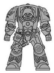 Левый наплечник Доспехов Терминатор несет каменный символ, известный как Крукс Терминатор - Терминаторский Крест. Этот символ совмещает в себе тактическое обозначение подразделения Терминаторов и почетный знак.