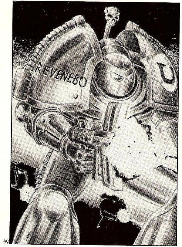 Здесь мы уже безошибочно можем узнать дизайн Терминаторов. Торс и плечи разделены и формируют четкий силуэт, вернулась цилиндрическая окантовка и значительно модернизировался экзоскелет конечностей. Квинтэссенция всех стадий разработки – полностью функционирующая Тактическая Броня Дредноут. Важнейшие проблемы были решены и все последующие версии были по сути своей лишь доработками. Удачная идея размещения охлаждающих блоков на спине, получила свое продолжение, позволив еще больше усилить грудную защиту. Несущие системы были настолько эффективны, что был принят стандартный комплект вооружения для Терминаторов – штормболтер и массивная силовая перчатка. Эта комбинация была слишком тяжела для стандартного доспеха Космического Десанта.