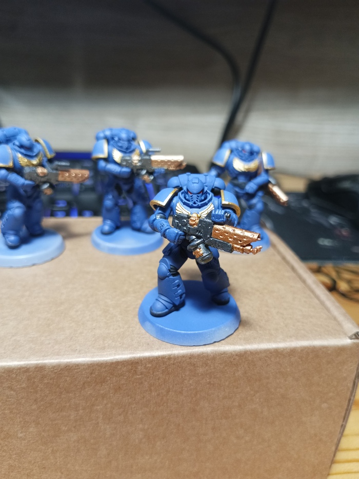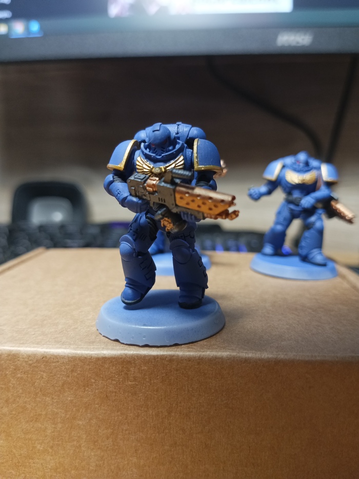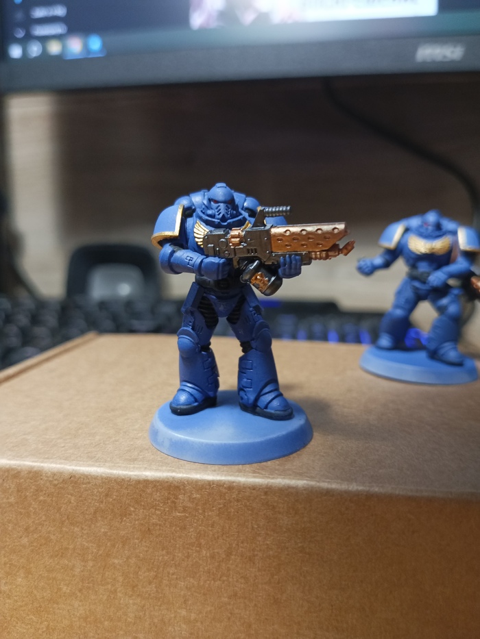 В одно мгновение казалось, что превосходящие силы врага вот-вот сомнут немногочисленных Ультрамаринов. В следующее мгновение терминаторы в синей броне материализовались из вспышек телепортации, в то время как Зачинщики обрушились на руины и открыли огонь по орде. Искаженные твари разрывались с восторженными воплями. Десятки культистов падали, искалеченные и изувеченные.